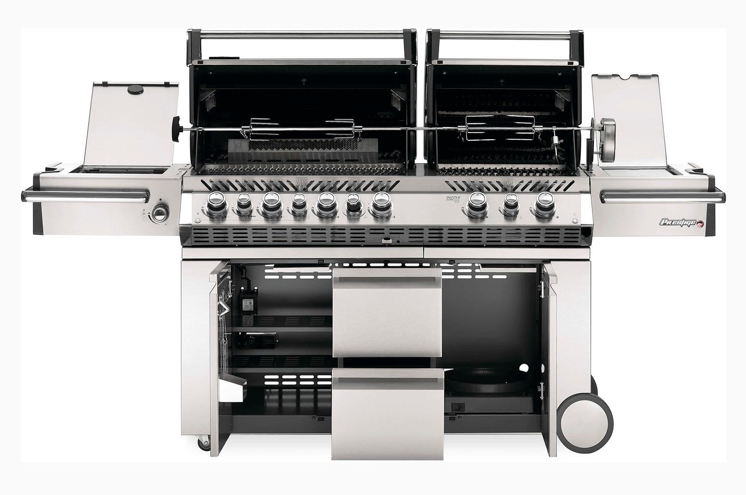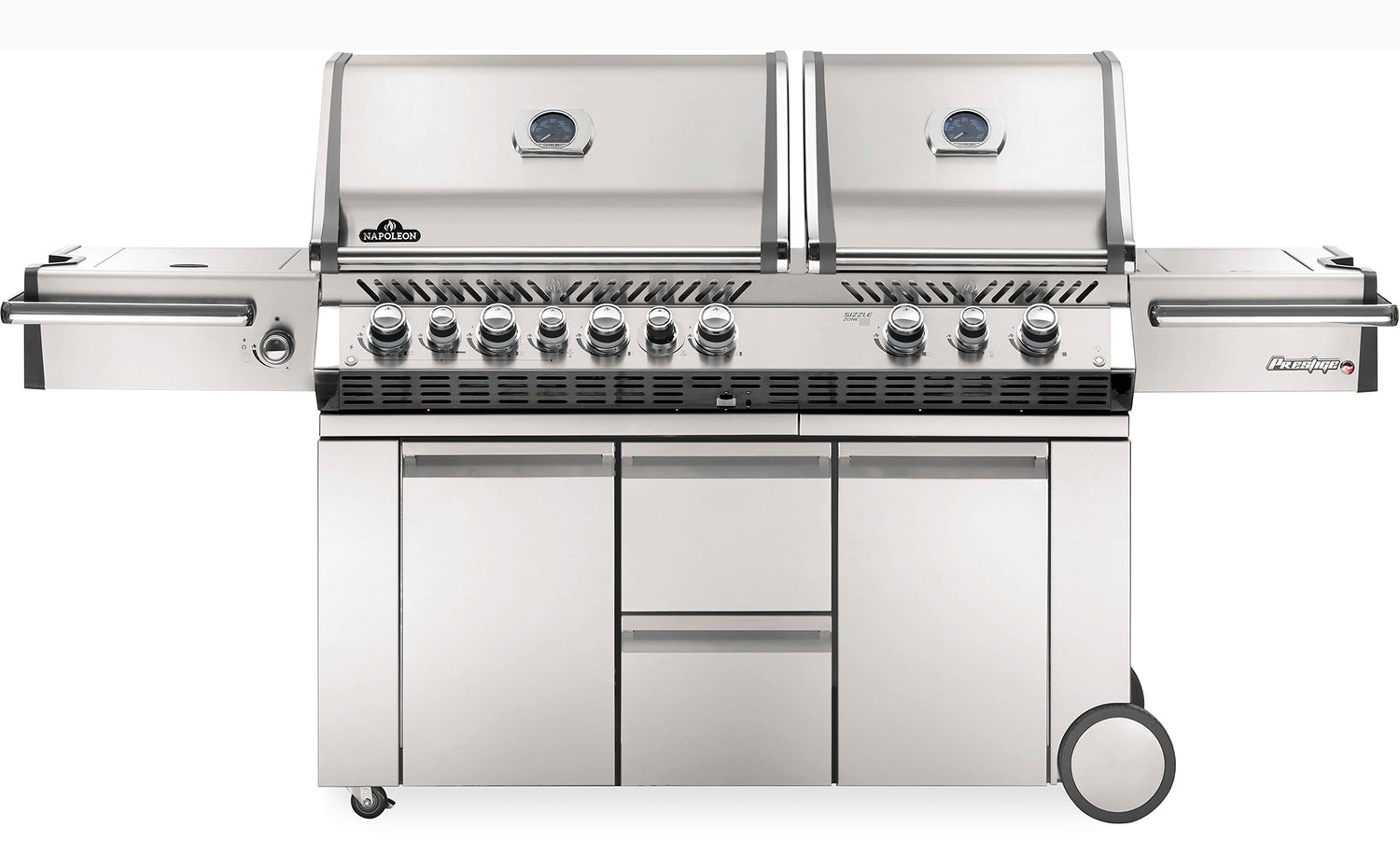Napoleon PRO825-kaasugrilli, on Prestige® lippulaivamalliston sekä Napoleonin suurin kaasugrilli. PRO825 on tyylikäs ja suuri kaksikupuinen grilli, joka on varustettu kahdella SIZZLE ZONE™ pohjapolttimolla, savulastulokerolla, sekä monikeihäisellä rengaspoltin sivukeittimellä. Kaiken tämän lisäksi grillissä on infrapunatakapoltin, joka tarjoaa täydellisen pihakeittiön suuremmallekin perheelle, tyylikkäästi viimeistellyssä, kestävässä rungossa. Tämä innovaatioita täyteen pakattu grilli on täysverinen Napoleon kaasugrilli, joka on Napoleonin tapaan rakennettu valmistamaan hyvän makuista ruokaa 20 vuoden takuuohjelmalla.