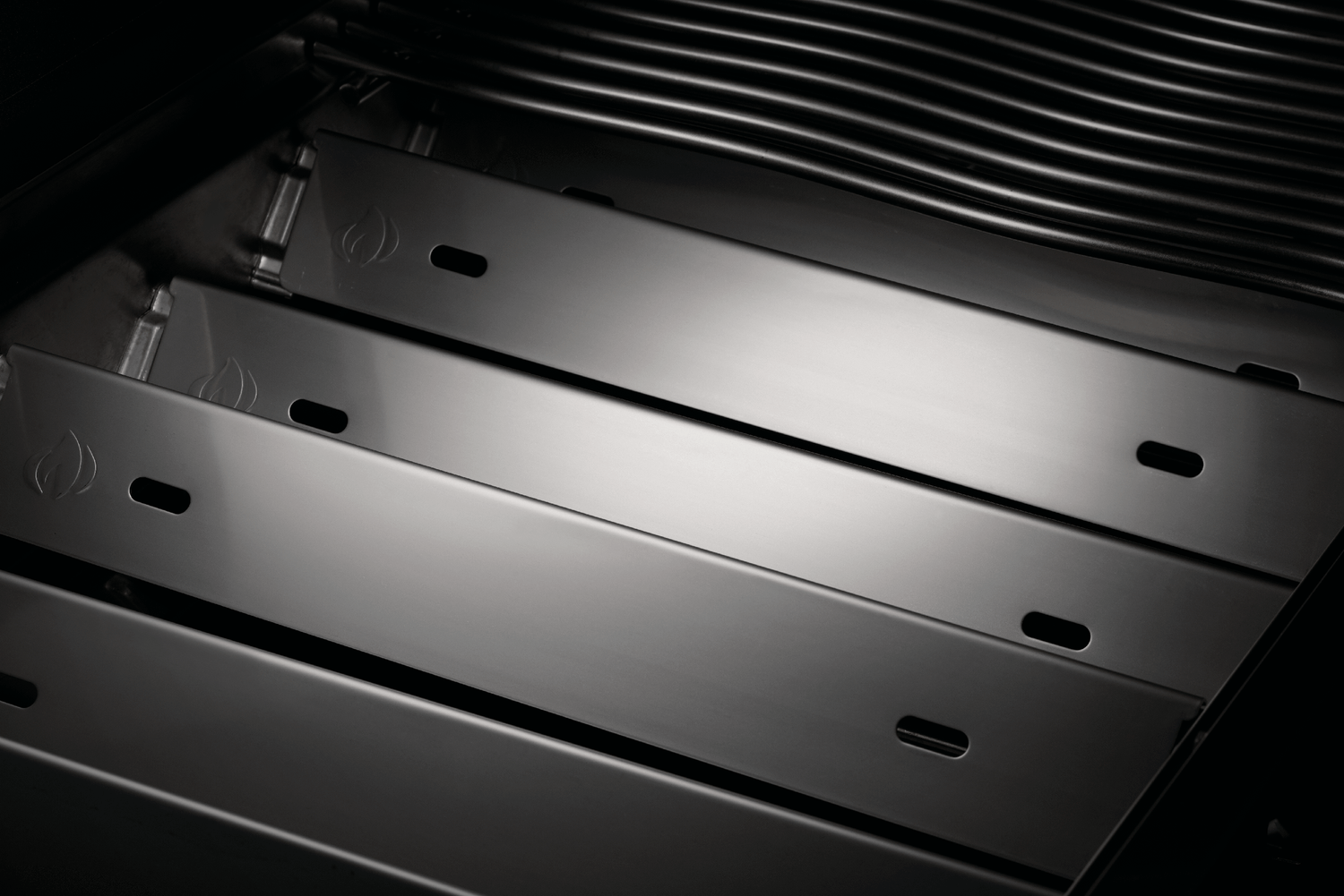 Napoleon Prestige® PRO825 grillin tulipesät on valmistettu kestävästä alumiinivalusta. Isomman kuvun alla on neljä paksusta ruostumattomasta teräksestä (304) valmistettua tehokasta poltinta, joiden päällä on PRESTIGE -sarjan kaksitasoinen lämmöntasausjärjestelmä, vie grillauksen aivan uudelle tasolle, tarjoillen tasaista lämpöä korkealta ja kovaa sekä hitaasti ja pehmeästi aina kulloisenkin tarpeen mukaan. Pienemmän kuvun alta löytyy kaksi kaasutoimista SIZZLE ZONE™ infrapunapoltinta, joiden väliin on asennettu erillinen keskipoltin lämmön ylläpitoon.