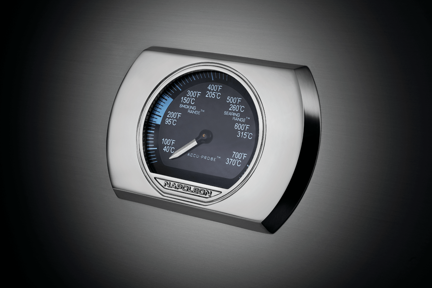 Prestige® PRO825 grillissä on kaksi korotettua tuplakuorista rosterikupua, valumetalli sivuilla ja niissä on helposti luettavat ja tarkat ACCU-PROBE™ lämpömittarit, joissa on Celsius ja Fahrenheit lämpötilat. PRO825 mallin korkea kupu mahdollistaa, että grillissä olevaa ruostumattomasta teräksestä valmistettua infrapunatakapoltinta ja lisävarusteena myytävää varrasta päästään hyödyntämään optimaalisesti.