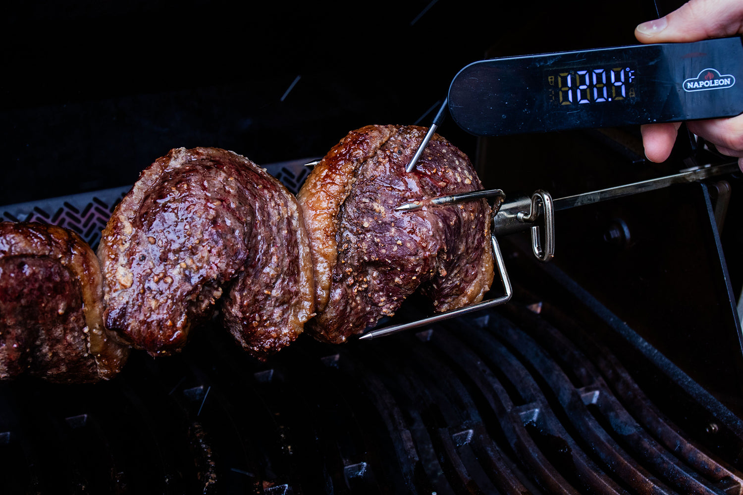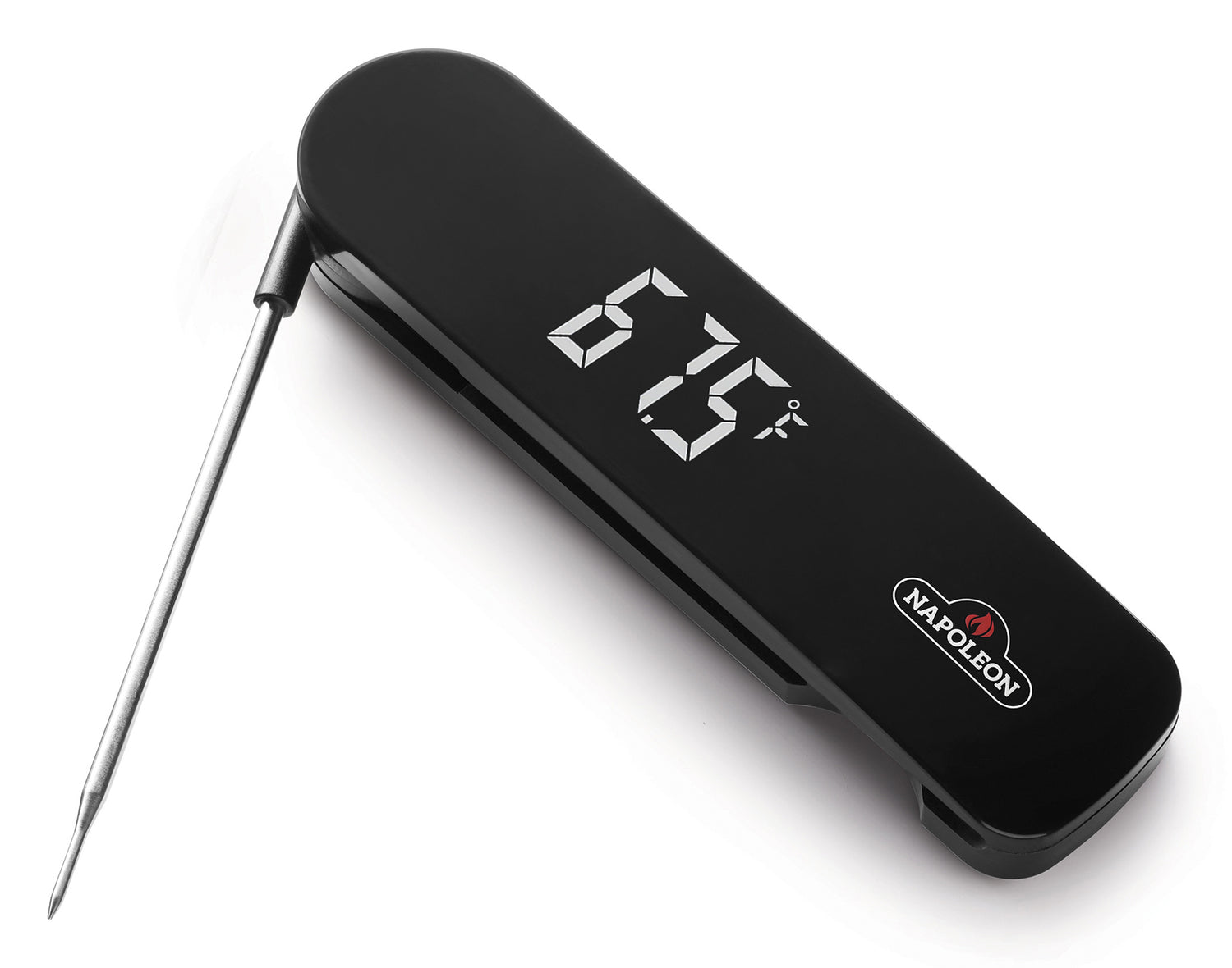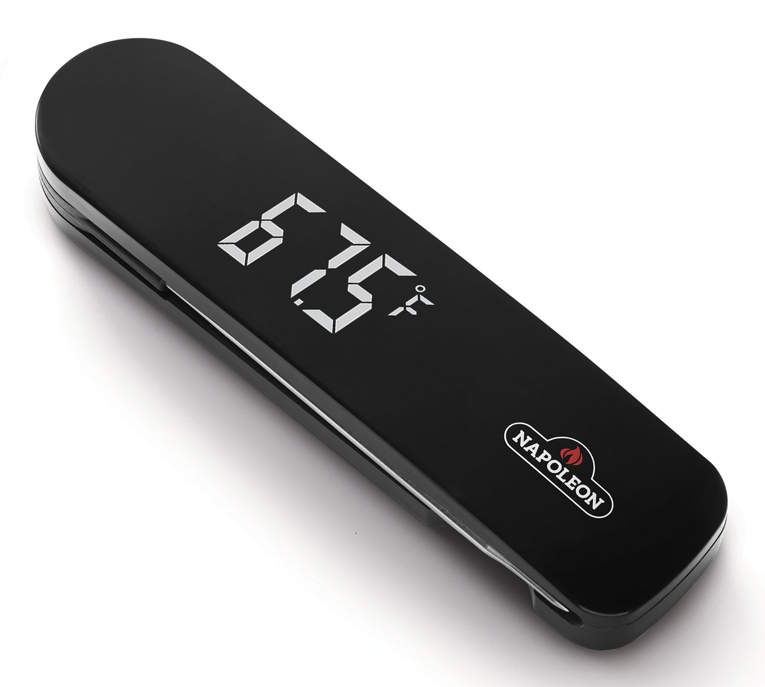 Aika, lämpö ja lämpötila ovat kolme tärkeää tekijää, joita aidon grillimestarin on hallittava. Nyt voit rentoutua ruoanlaiton välissä ja tarkastaa Napoleonin laadukkaalla, digitaalisella lämpömittarilla, milloin liha on valmista tarjoiltavaksi.