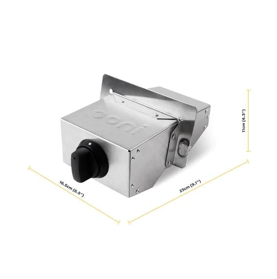 Nyt voit muuntaa Ooni-pizzauunisi kätevästi kaasulla toimivaksi! Kiinnitys uuniin onnistuu helposti kahdella ruuvilla. Mukana kiertonuppi sujuvaan kaasunsäätöön eri lämpötilojen välillä.