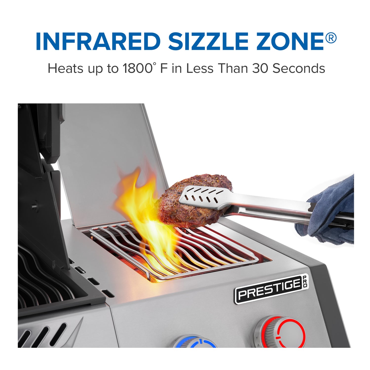 Toiseen sivutasoon upotettu SIZZLE ZONE -infrapunasivupoltin kuumenee jopa 800 asteeseen ja karamellisoi lihan pinnan täydellisesti. Se toimii myös perinteisenä sivukeittimenä, ja siihen on saatavilla lisävarusteita.