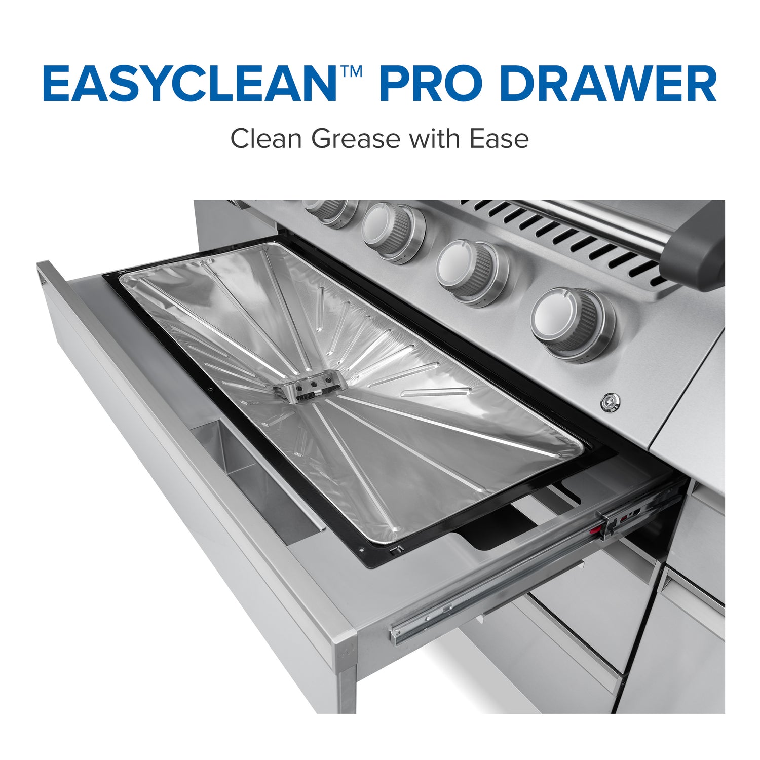 Pro665-mallissa on runsaasti säilytystilaa: kaksi vetolaatikkoa, sivukaapit sekä ulosvedettävä kaasupulloteline integroidulla vaa'alla. Neljä teräspyörää helpottavat siirtämistä. Rasvankeräysjärjestelmä sijaitsee ylimmässä vetolaatikossa ja koostuu irrotettavasta rasvapellistä ja -kupista, joihin on saatavilla suojukset puhdistuksen nopeuttamiseksi.