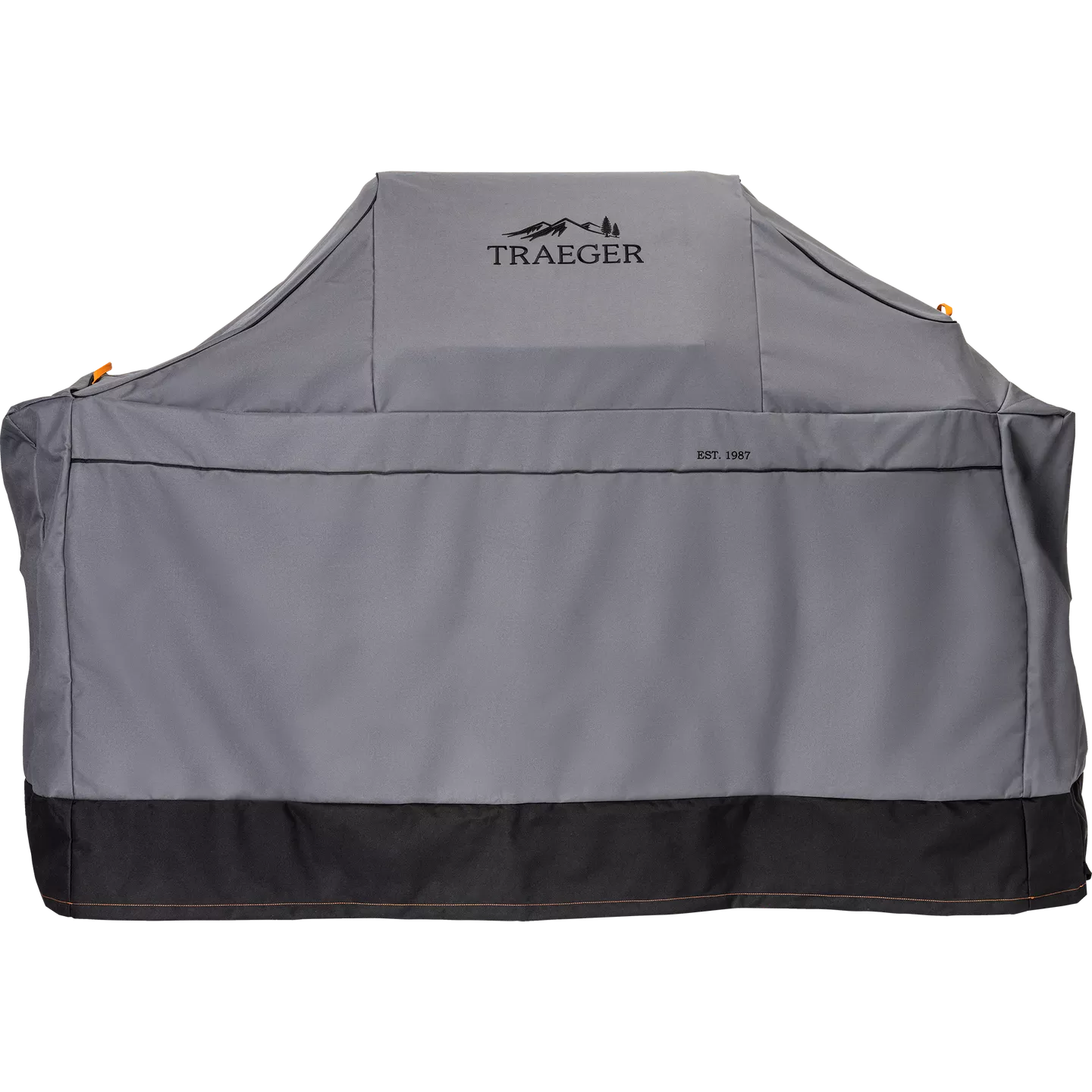 Traeger Ironwood -täysipitkä grillin kansi suojaa grilliäsi vuoden ympäri ja pitää sen huippukunnossa kaudesta toiseen. Kestävä 600D-polyesterikangas hylkii vettä, kestää hankautumista ja suojaa grillin pintaa sateelta, lumelta, auringolta ja myrskyiltä. Materiaali on lisäksi tulenkestävää, joten se soveltuu erinomaisesti vaativiin olosuhteisiin.