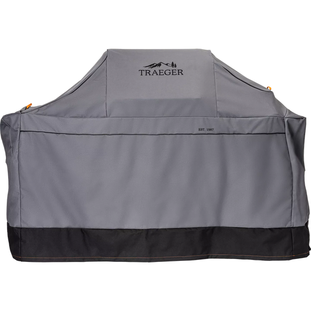 Kansi on muotoiltu istumaan Ironwood-grilliin täydellisesti, ja nailonnauhalenkit tekevät sen poistamisesta ja asettamisesta helppoa. Brodeerattu Traeger-logo viimeistelee ulkonäön ja kertoo laadusta. Tämä suojus on paras tapa varmistaa, että ironwood-grillisi pysyy siistinä ja toimintavalmiina vuoden jokaisena päivänä.