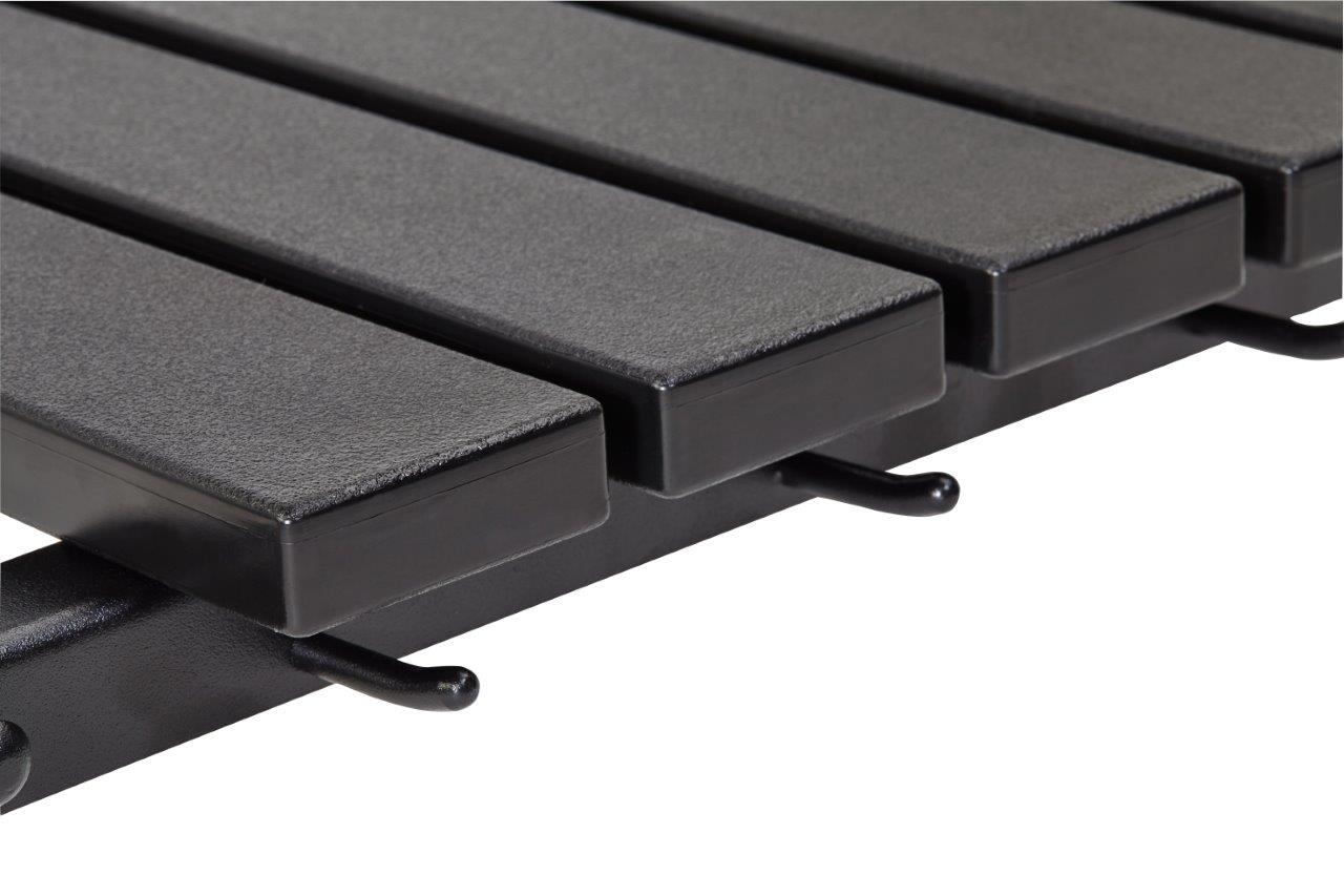 - Viimeistellyt, taitettavat korkeatiheyksisestä polyeteenistä valmistetut hyllyt/kahva