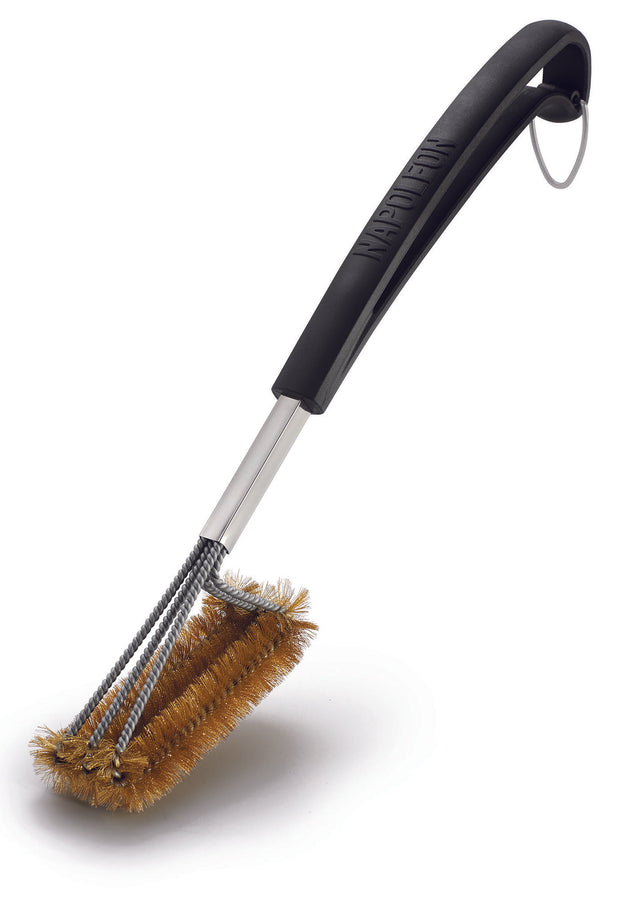 - Käytä Napoleonin puhdistusharjaa valurautaisten paistopintojen puhdistamiseen. Tämä puhdistusharja soveltuu täydellisesti valurautapintojen perusteelliseen puhdistamiseen. Harjan pitkä varsi lämpöä kestävällä kahvalla suojaa käsiä puhdistettaessa kuumaa grilliä. Puhdista grillin paistopinnat niiden ollessa vielä lämpimät. Pitkän varren toisessa päässä koukku ripustusta varten. Muista, puhdas grilli on onnellinen grilli!