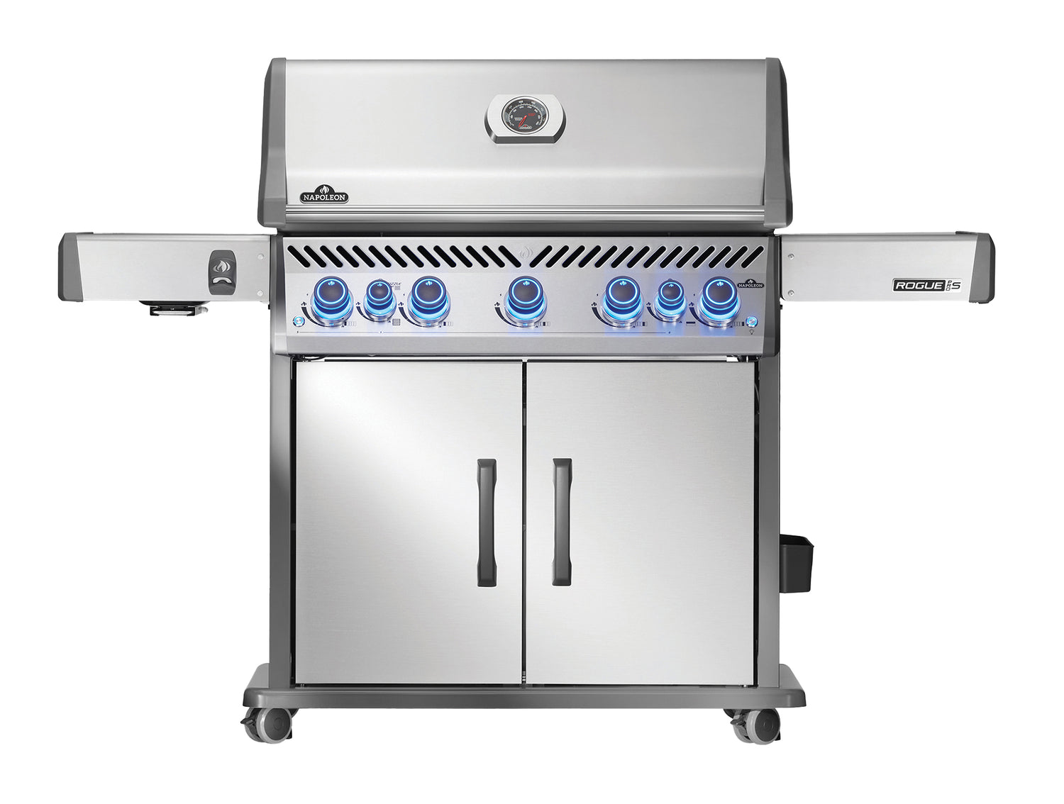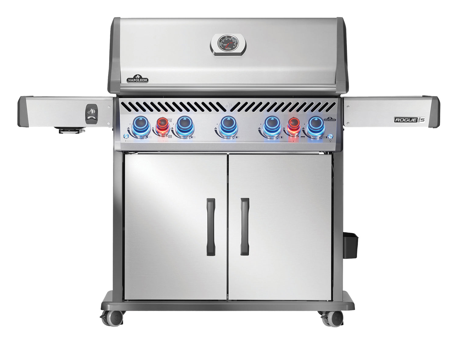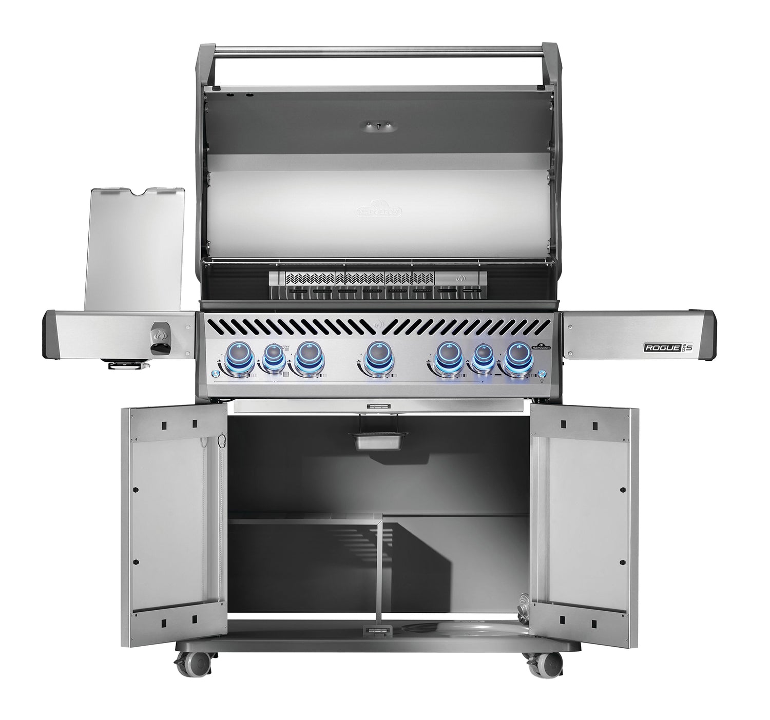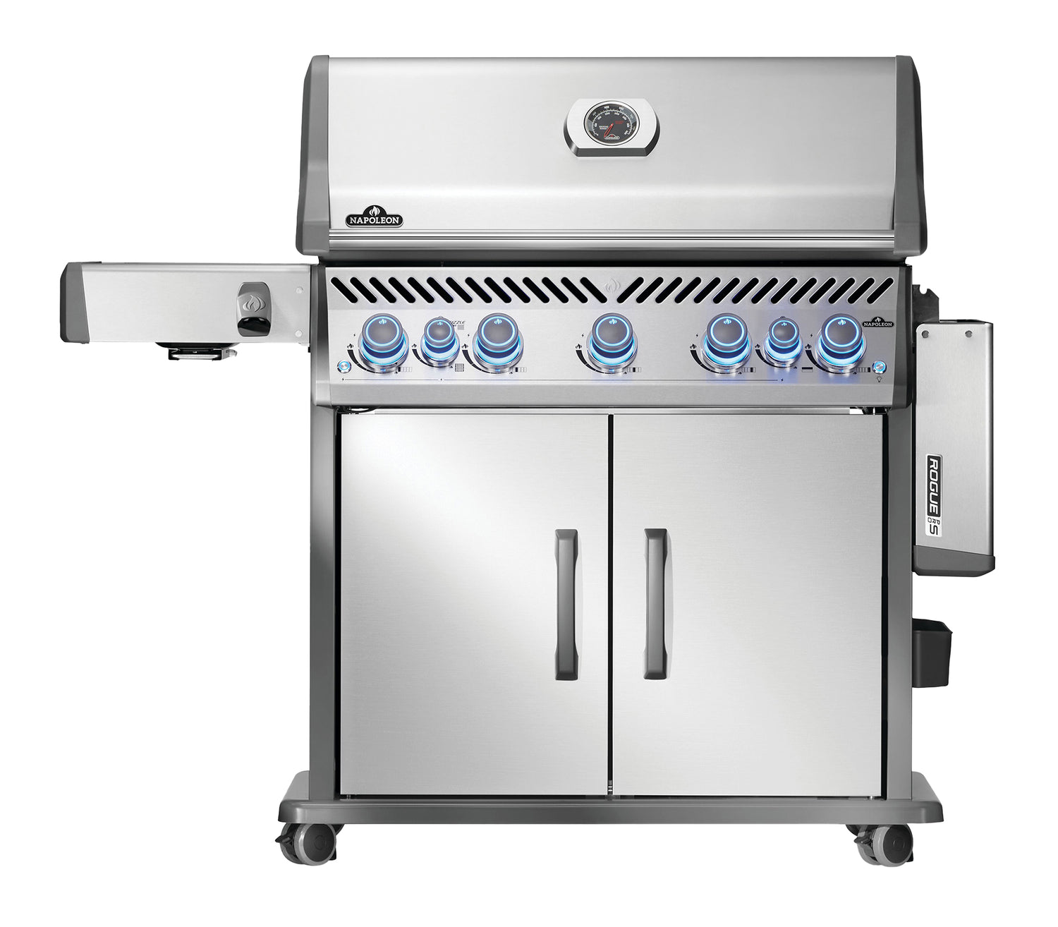 UUTUUS! Napoleon Rogue® PRO-S 625 kaasugrilli on varustettu viidellä tehokkaalla rosterisella pohjapolttimolla, SIZZLE ZONE™-infrapunasivupolttimolla ja takapolttimolla. SIZZLE ZONE™-sivupolttimolla kypsennät täydelliset pihvit yli 800 °C:n lämpötilassa ja takapoltin helpottaa varrasruoanlaitossa