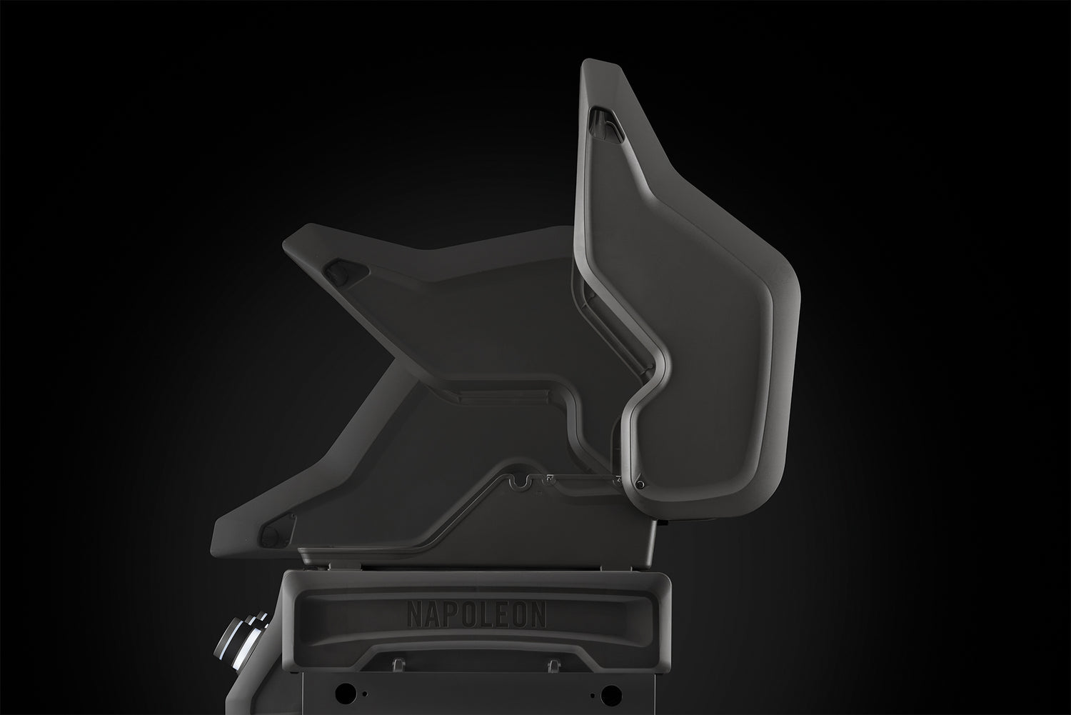 Grillin alla on tilava ovellinen kaappi, jossa voidaan säilyttää erilaisia tarvikkeita ja kaasupulloa, kun grilli ei ole käytössä. Sivuilla kaksi reilun kokoista sivutasoa, joiden päissä tarvikekoukut. Sivutasot taittuvat alas vieden vähemmän tilaa säilytyksessä. Grilliä on helppo siirtää sen neljän pyörän avulla, joista kaksi on lukittavissa.