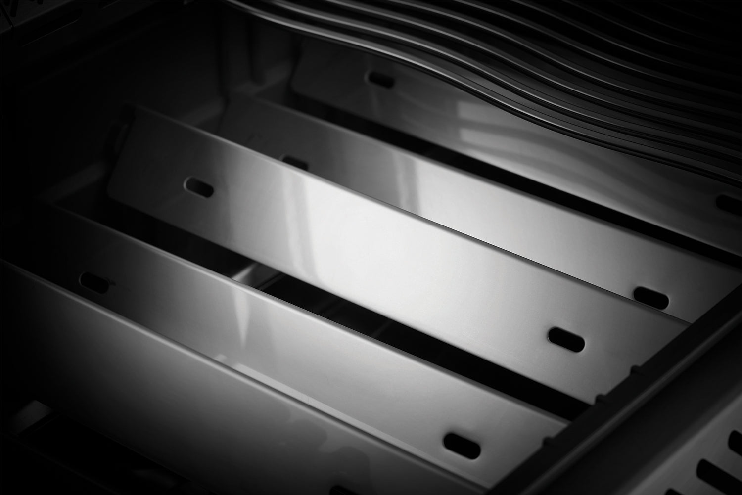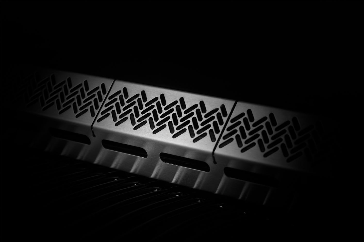 Grillien tulipesä on muotoon valettua alumiinia, joka on pitkäikäinen materiaali ja helppo pitää puhtaana. Polttimoiden tuottama lämpö on helposti säädettävissä ergonomisilla säätönupeilla ja kuvun sisällä ympäröivää lämpöä voi tarkastella helposti kuvussa olevasta ACCU-PROBE™-lämpömittarista. Grillin paistopinnat muodostuvat valurautaisista WAVE™ grilliritilöistä, joiden avulla voit luoda täydellisen pinnan ja kypsennyksen grillatuille ruoille. Aaltomaiset ritilät ovat mattapintaista emaloitua valurautaa ja niitä voidaan käyttää molemmilta puolilta, ritilä on toiselta puolelta terävä ja toisella puolella on ns. rasvaurat. Lisävarusteena posliiniemaloitu kaksipuolinen umpiparila.