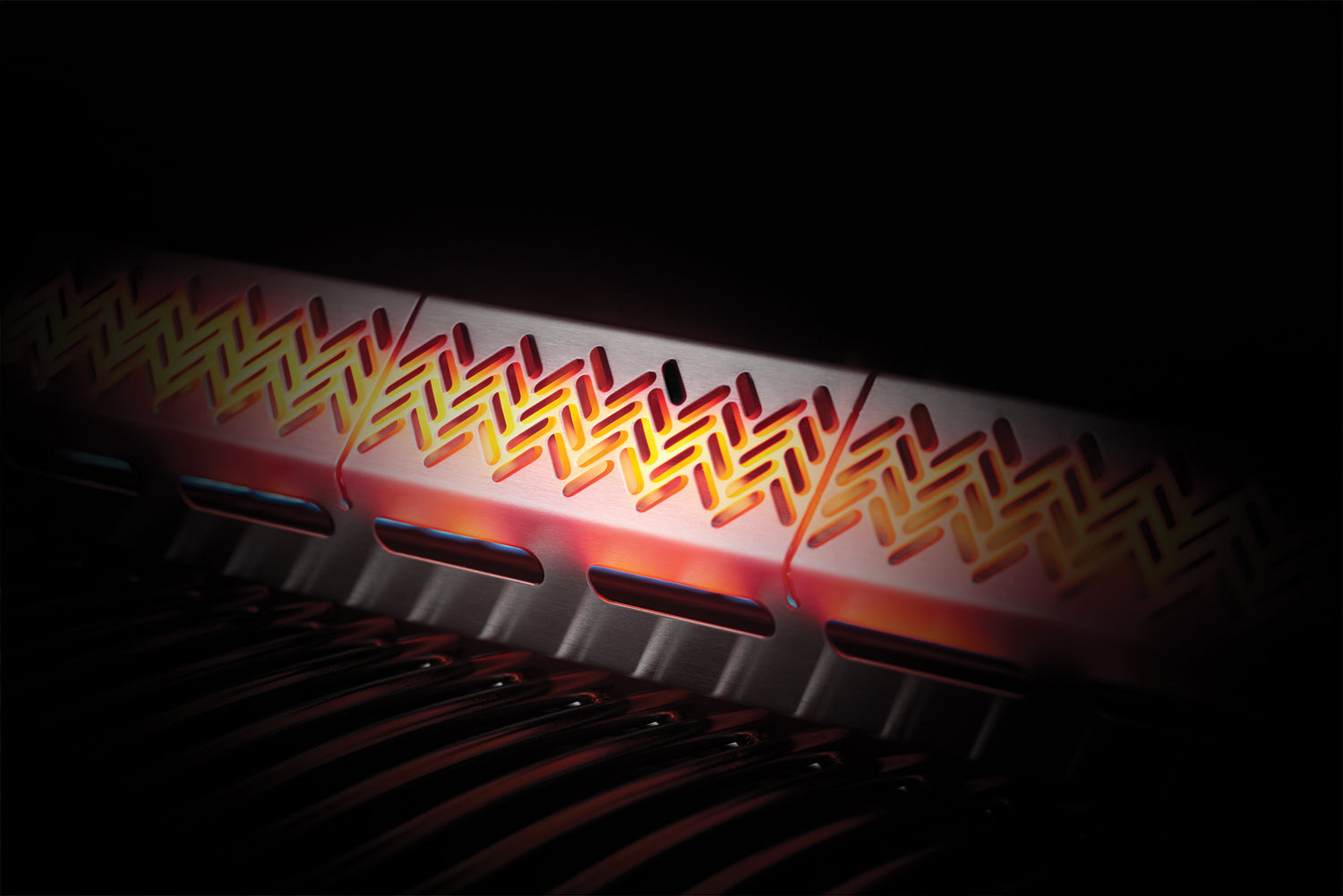 Grillissä on kaasukäyttöinen SIZZLE ZONE™ infrapunasivupoltin upotettuna toiseen sivutasoon. Poltin lämpenee nopeasti noin 800 asteeseen, joten lihan pinta karamellisoituu täydellisesti jokaisella grillauksella. Infrapunasivupolttimen korkeussäädettävä rosterinen keittoritilä antaa grillattaville raaka-aineille hienon grillauskuvion. Monipuolinen SIZZLE ZONE™ sivupoltin toimii myös perinteisenä sivukeittimenä ja lisävarusteena on saatavilla tuulisuoja varrastikuilla, sekä umpiparila.