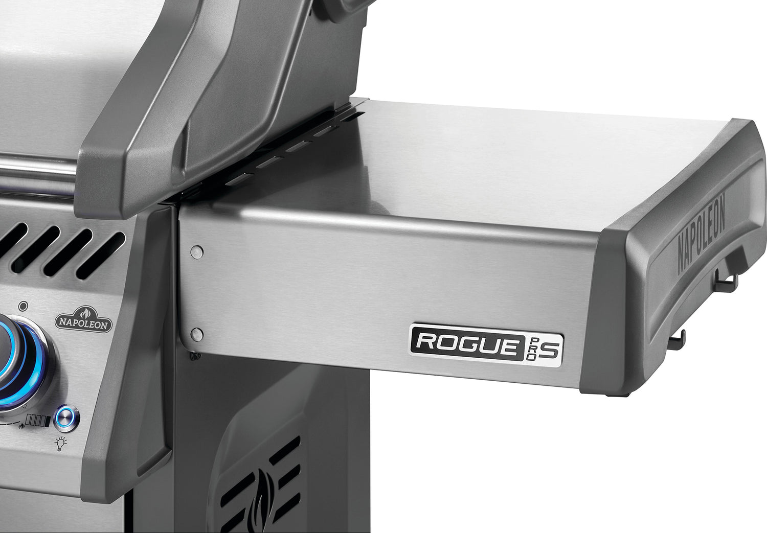 Rogue® PRO-S kaasugrillissä on korkea kupu ja paksusta ruostumattomasta teräksestä valmistetut grillausritilät. Pimeässä grillattaessa Rogue PRO S-grillin taustavalaistut säätönupit helpottavat grillausta, sillä näet säätönupin taustaväristä, onko poltin päällä (punainen) vai pois (sininen). Tilavat sivutasot tarjoavat hyvin tilaa esivalmisteluille ja toiseen sivutasoon on integroitu pullonavaaja, josta on varmasti hyötyä seuraavissa puutarhajuhlissa. Tämä laadukas ja monipuolinen kaasugrilli sopii kaikenlaisiin ulkokeittiöihin ja on varustettu kattavalla 15 vuoden takuuohjelmalla.